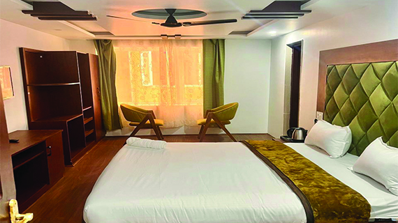 The combination of elegant décor, wooden flooring, and modern ceiling design creates a serene and stylish ambiance, perfect for both leisure and business travelers.